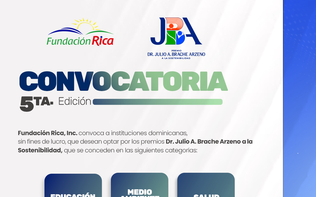 Santo Domingo, 18 junio de 2025 — La Fundación Rica anuncia la apertura oficial del proceso de postulación para el Premio Dr. Julio A. Brache Arzeno a la Sostenibilidad 2025, un reconocimiento que busca destacar e impulsar iniciativas que promuevan el desarrollo sostenible en la República Dominicana.
