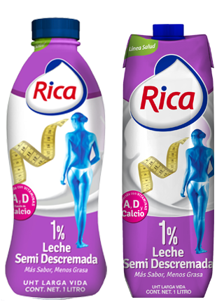 Especialmente formulada para personas que buscan llevar un estilo de vida Light y Activo, Rica Descremada al 0% es una leche ligera y saludable ideal para ayudarte a perder peso y mantener la forma. Si estás empezando una rutina de ejercicios y necesitas llevar una dieta balanceada, la Leche Rica Descremada al 0% es el complemento ideal para aportarte las vitaminas y el calcio de la leche sin la grasa. Cada paso cuenta, disfruta tu Leche Rica Descremada al 0% grasa.