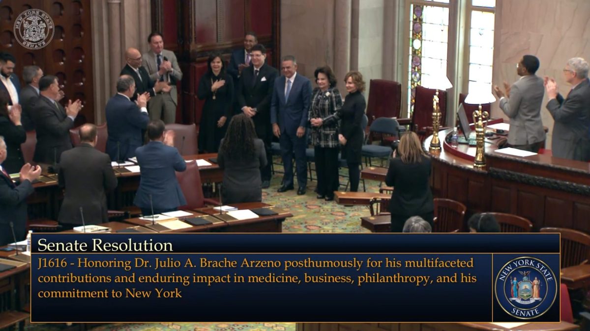 Nueva York, NY – En una ceremonia cargada de emoción y gratitud, el Senado del Estado de Nueva York, liderado por el Senador Luis Sepúlveda, rindió homenaje a la familia Brache con la aprobación unánime de la Resolución J1616 por todos los 63 senadores. Esta resolución histórica reconoció los esfuerzos filantrópicos, la astucia empresarial y el servicio comunitario del fallecido Dr. Julio A. Brache Arzeno y su familia, marcando un honor sin precedentes para una familia dominicana por el cuerpo legislativo más alto de Nueva York.